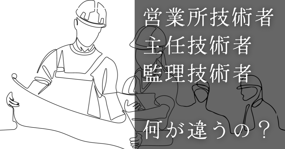 建設業では、営業所技術者、配置技術者、主任技術者、監理技術者といった名称の技術者がたくさんおり、一体誰が何をするのか分からないといった点を紐解いていきます。